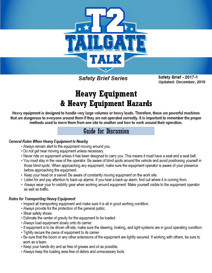 Designed for field supervisors to discuss with their workers, Tailgate Talks cover a wide variety of safety topics. Below are some resources to help you bring Tailgate Talks to your organization. Be sure to check back for a new Tailgate Talk topic every month.
